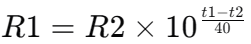 其中,R1R1和R2R2分別代表?yè)Q算前t1t1和換算后t2t2時(shí)刻的絕緣電阻值。